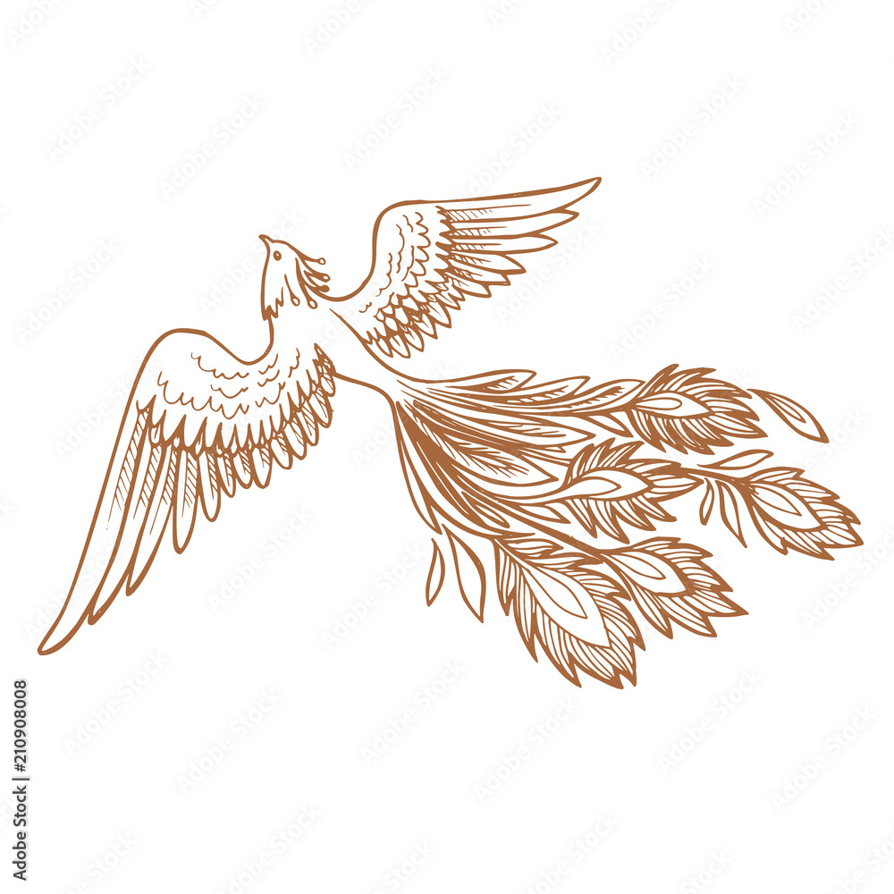 Phoenix Fire Bird Illustration And Character Design Hand Drawn Phoenix Tattoo Japanese And Chinese Style Legend Of The Firebird Is Russian Fairy Tales And It Is Creature From Slavic Folklore Stock Vector Adobe